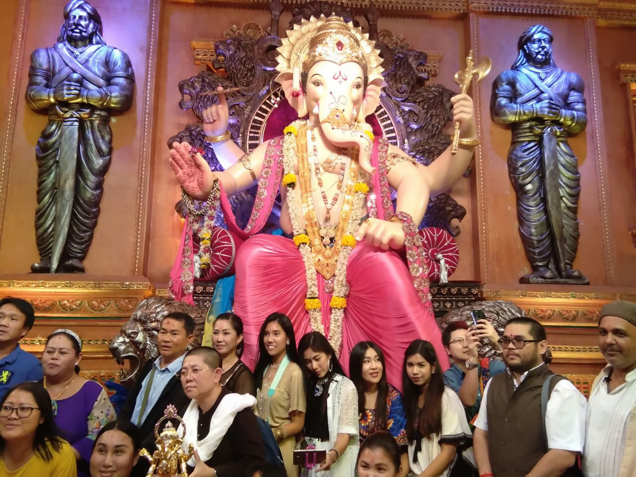 Team of Aayan Journeys with clients from Thailand who came to Mumbai, India to experience the wonderful festival of Ganesh Chathurti. Ganapati Visarjan is a prominent ten day celebration in Mumbai where Lord Ganesha is worshiped for nine days and then submerged in water at the end of the festival.